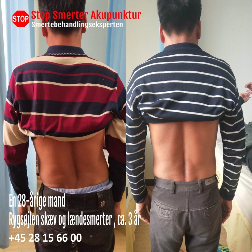 1, En 28-årige mand, rygsøjlen skæv, ca. 2år