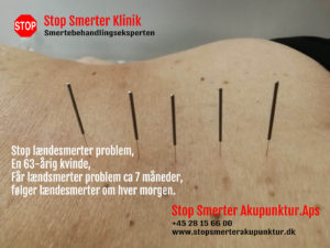 Lændesmerter – En 63-årige kvinde, ca 7 måneder – Akupunktur på Frederiksberg En 63-årige kvinde med lændesmerter. Få lænd smerter problem ca 7 måneder og