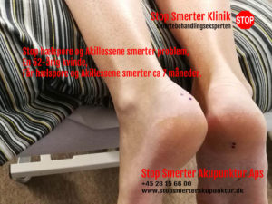 Hælsporer og Akillessene En 52-årige kvinde. Får hælspore på højre foden og Akillessene smerter på venstre foden ca 7 måneder. Hun føler mange bedre efter